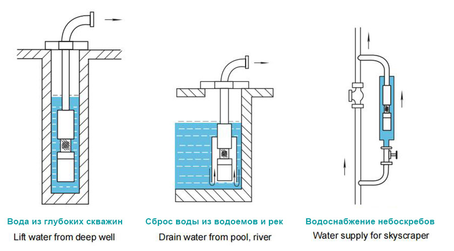 Integrimi i drejtpërdrejtë në komplet, puna në ujë të thellë. Përdoret kryesisht për ujitjen e tokës bujqësore, ujësjellës-kanalizimeve të qyteteve, ndërmarrjeve industriale dhe minerare.