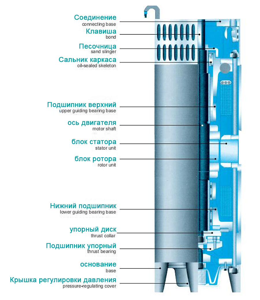 2. Motori zhytës përdor dizajn të lagësht të mbushur me ujë të tipit YQS, i mbushur me ujë të pastër në zgavër, kryesisht për ftohjen e motorit dhe lubrifikimin e kushinetave. Gjatë funksionimit, meqenëse ndryshimet në temperaturë mund të shkaktojnë ndryshime në mbushjen e ujit, në motor janë instaluar rregullatorët e presionit për kalibrim.