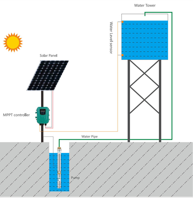 Kontrolluesi mund të përdoret në modalitetin e vetëm të energjisë diellore, rryma maksimale është e kufizuar në 12a dhe fuqia maksimale monitorohet nga algoritmi MPPT. Shpejtësia e pompës përcaktohet nga fuqia e baterive diellore, shpejtësia maksimale e pompës, fuqia maksimale e kontrolluesit dhe temperatura e kontrolluesit. Kur plotësohen ndonjë kusht, shpejtësia e pompës do të mbetet aktuale ose do të funksionojë me një shpejtësi të ulët.