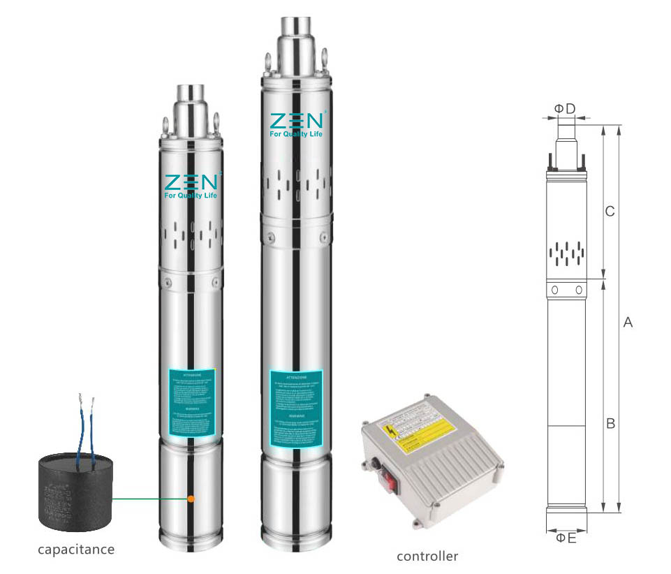 KODI I IDENTIFIKIMITNe e kuptojmë se aplikacione të ndryshme mund të kenë nevoja unike, kjo është arsyeja pse ne ofrojmë gjithashtu opsione të pompës me porosi. Pavarësisht nëse është madhësia specifike, kapaciteti ose veçori të tjera të personalizuara, marka ZEN mund ta përshtatë pompën tonë zhytëse 3.5/4QGD për puset e thella sipas specifikave tuaja të sakta.* 3,5 QG* 3.5: Diametri i pusit: 88 mm (3.5")*QG:Emri i pompës* D: Një motor (trefazor është D)* 1: Kapaciteti (m³/h)* 50: Kokë (m)* 0.37: Fuqia e motorit (KW)