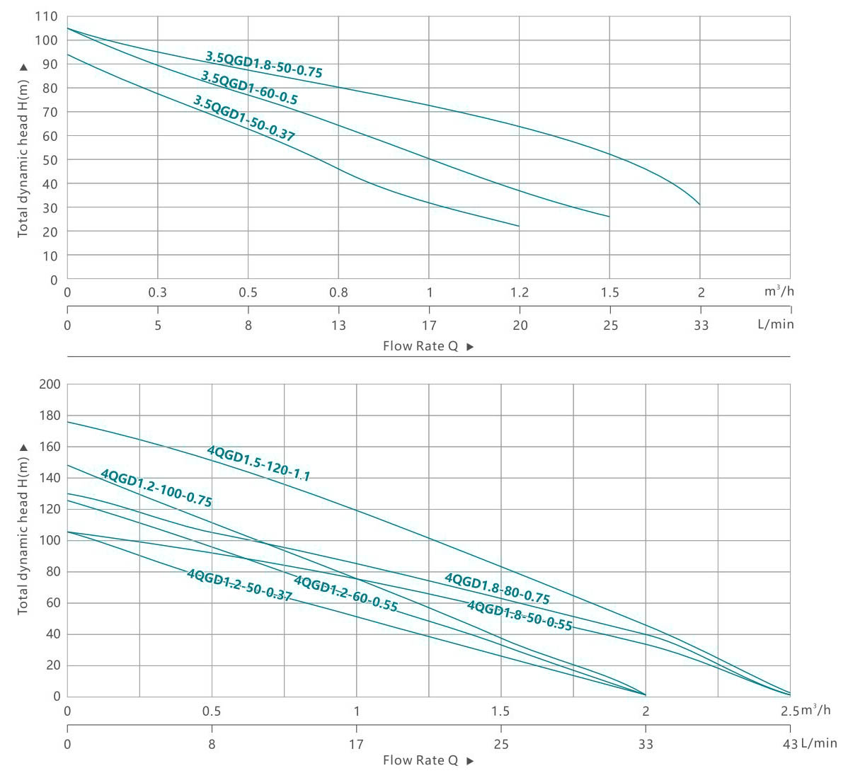| 3,5QGD1-50-0,37 | 0.37 | 0.5 | H(m) | 93 | 74 | 64 | 46 | 33 | 22 | 1 | |||||