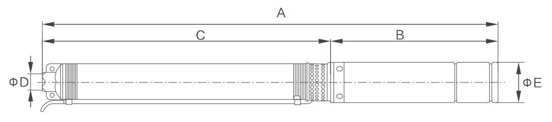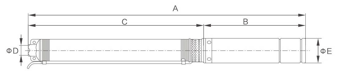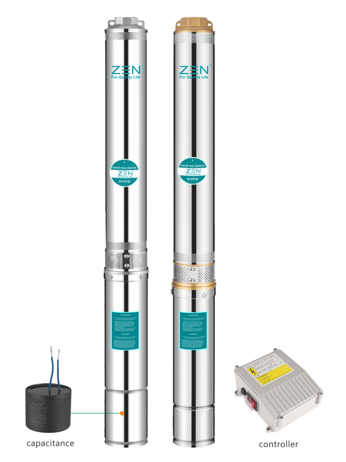Pompë e thellë çeliku inox e markës ZEN 3.5SDM E bërë nga çelik inox, pompat cilësore janë projektuar për të siguruar shpejtësi të lartë rrjedhjeje dhe presion të shkëlqyer uji, duke siguruar furnizim të qëndrueshëm dhe të besueshëm me ujë. Identifikues* 3.5 SD*3.5: diametri i shpimit: 90 mm (3.5")* SD: pompa nënujore të serisë SD* M: motor njëfazor (trefazor pa M)*1: Kapaciteti (m3/h)* 9: Skena* 0,25: Fuqia e motorit (KW)