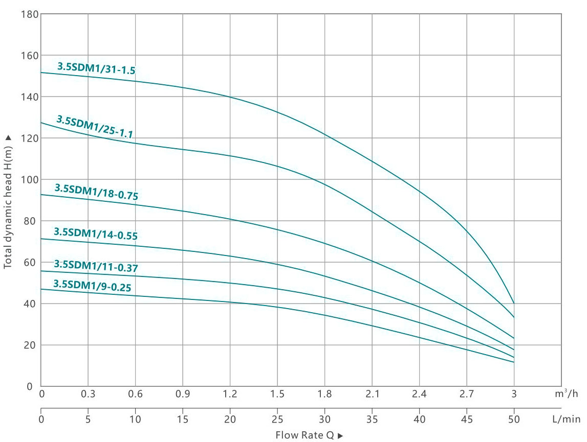 | 3.5SDM1/9-0.25 | 3,5SD1/9-0,25 | 0.25 | 0.33 | H(m) | 46 | 44 | 42 | 41 | 41 | 38 | 36 | 30 | 25 | 19 | 12 |