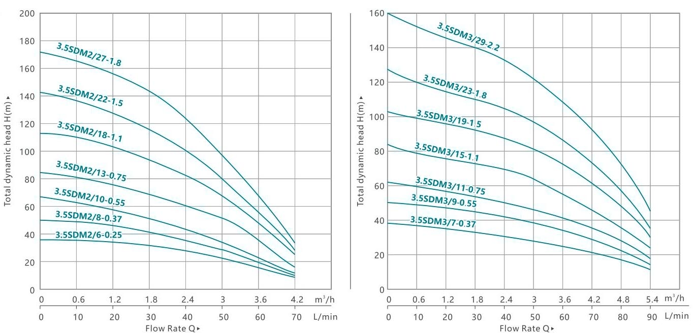 | 3,5SDM6/6-0,55 | 3,5SD6/6-0,55 | 0.55 | 0.5 | H(m) | 33 | 31 | 30 | 28 | 25 | 20 | 14 | 5 |