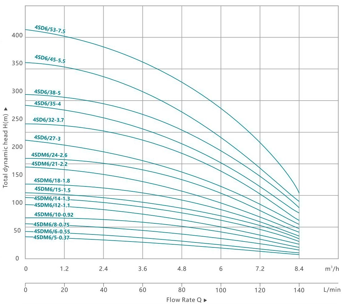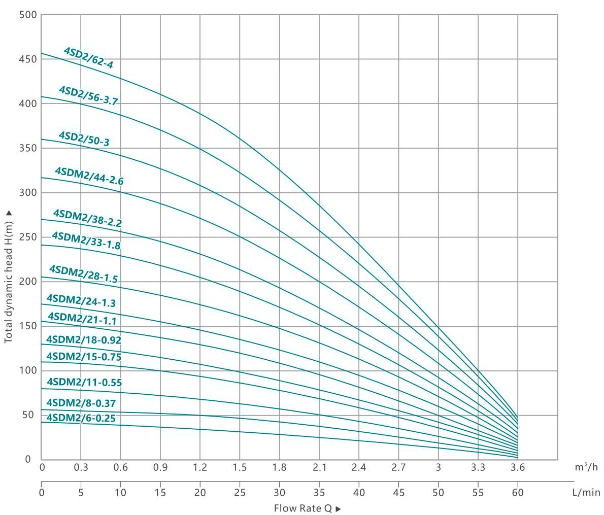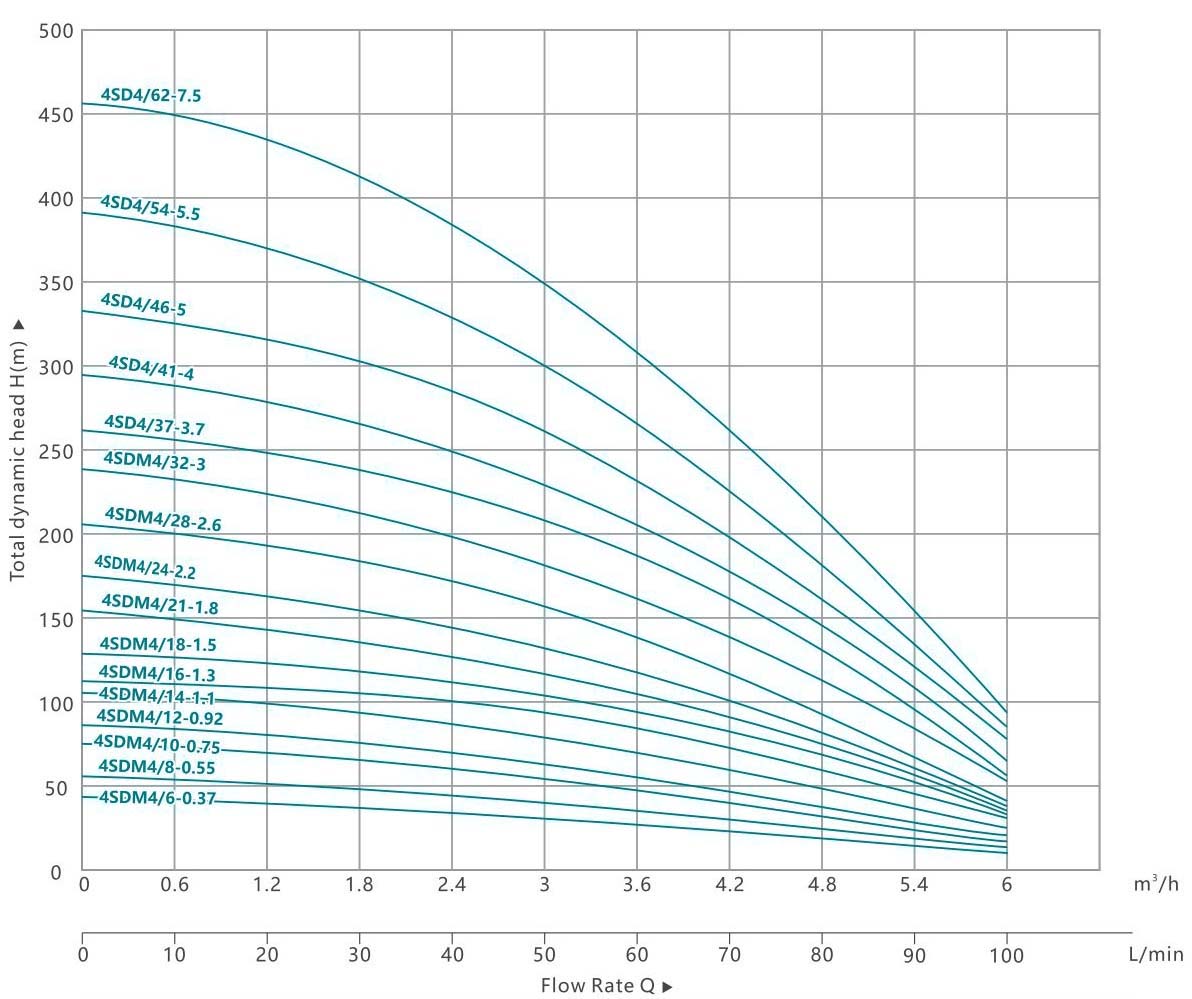 | 4SDM4/6-0,37 | 4SD4/6-0,37 | 0.37 | 0.5 | H(m) | 44 | 43 | 40 | 39 | 37 | 34 | 30 | 25 | 20 | 16 | 10 |
