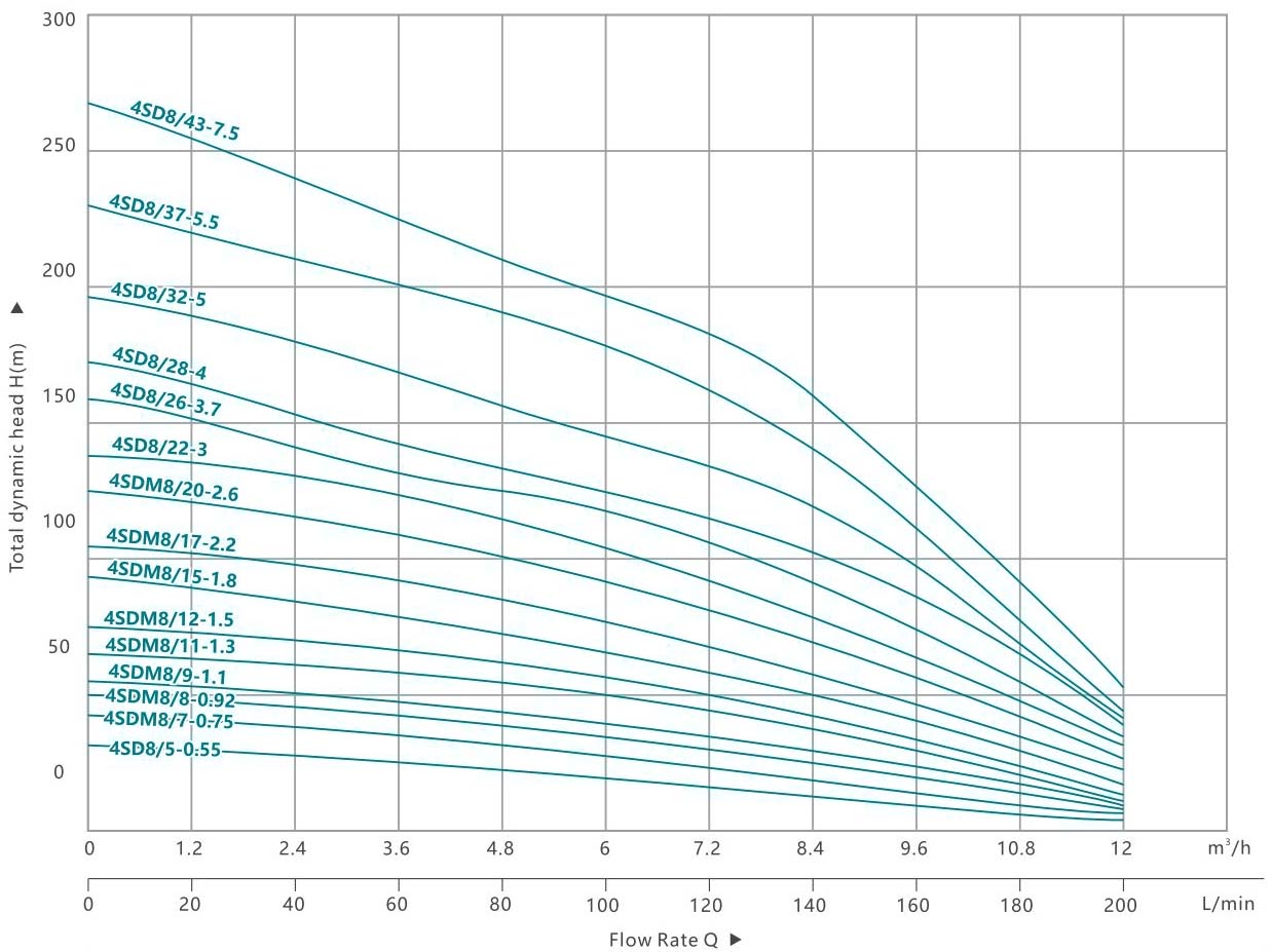 | 4SDM8/5-0,55 | 4SD8/5-0,55 | 0.55 | 0.75 | H(m) | 31 | 30 | 27 | 26 | 24 | 23 | 21 | 18 | 14 | 9 | 5 |
