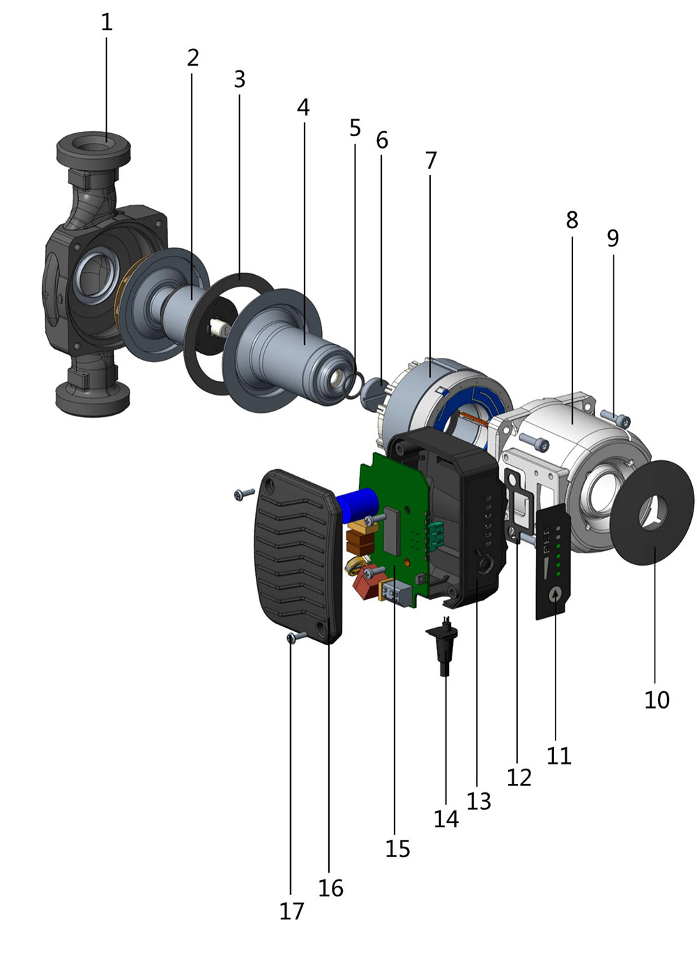 Rrota e punës Bosht Mbulesa e pompës Ndaloni të mbani Kushineta radiale Mëngë radiale e kushinetës Unazë magnetike Mëngë unaze magnetike Paketa e unazave magnetike |