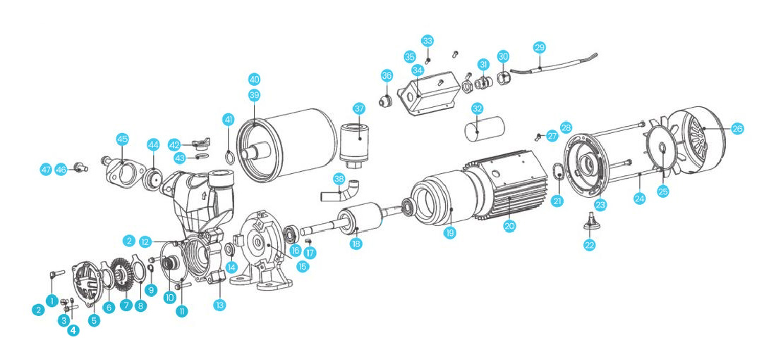 | 7 | Rrota | 19 | Rotor | 31 | Mbështetja e kabllove | 43 | Unaza "O". | ||||||||