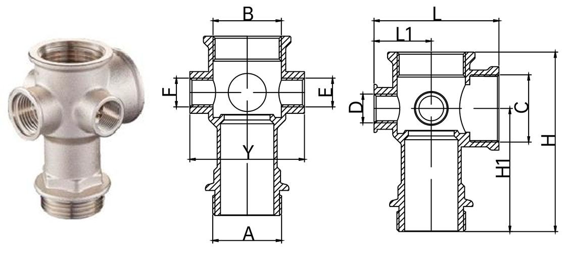 | Model | A | B | C | D | E | F | L | L1 | Y | H1 | H | Masa (gram) |