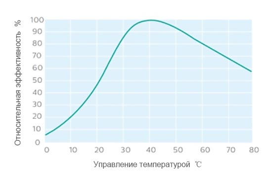 Efektiviteti i daljes ultravjollcë të llambave të merkurit me presion të ulët lidhet drejtpërdrejt me presionin e merkurit (ngopje), i cili, nga ana tjetër, varet nga temperatura e anës së ftohtë të llambës. Rrezatimi ultravjollcë siguron efikasitetin maksimal të daljes në një temperaturë prej rreth 40 ° C, siç tregohet në figurën 28. Ajri qarkullues ka një efekt të madh në temperaturën e murit të tubit dhe përdorimi i tensionit më të lartë mund të kompensojë efektin ftohës të rrjedhës së ajrit (ose temperaturën më të ulët të mjedisit). Figura 29 tregon një krahasim të gypave standardë TUV PL - L 36W të së njëjtës madhësi dhe tubave prej 60 W me një "prodhim të lartë". Ju mund të shihni rezultatet e kompensimit për fuqinë e specifikuar.