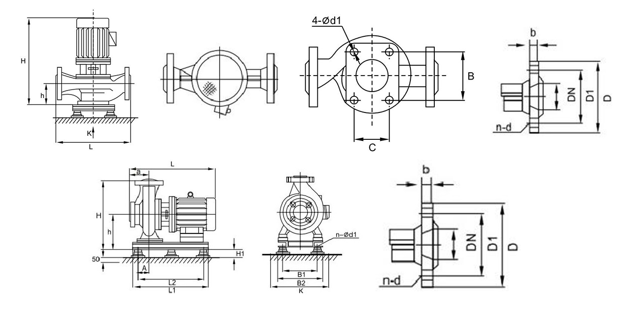 Instalimi i një rekordi vertikal | Madhësia e pompës horizontale | Madhësia e fllanxhës | Izolimi i dridhjeve | H1 | |||||||||||||