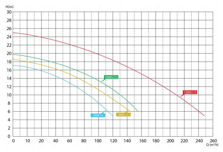 | Madhësia e daljes (mm) | Lloji i pompës | Motor me dy pole | (KW) |