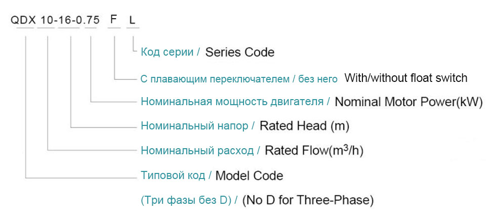 | 3 | QDX1,5-25-0,55F | 0.55 | 0.75 | 25 | 1.5 | 25 | 2900 | 8 | 3*0.75*8 |