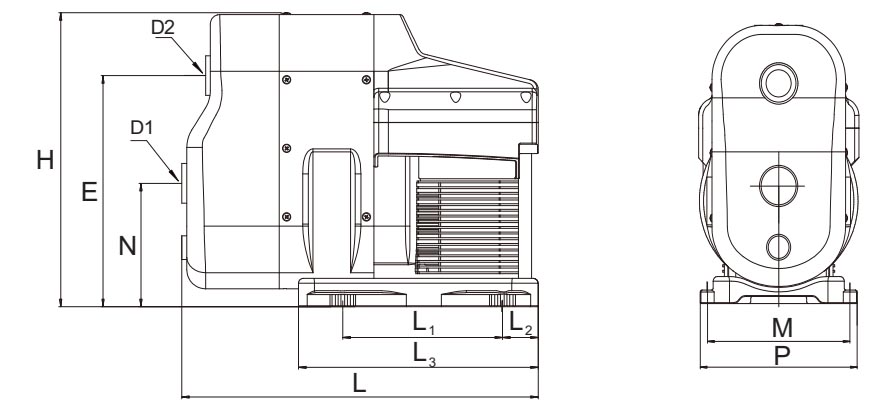 | Model | D1 | D2 | N | E | L1 | L2 | L3 | L | H | M | P | G.W (kg) |