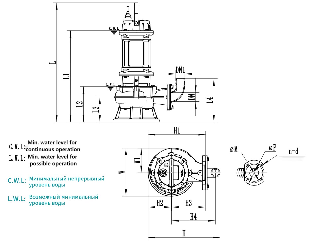 | Model. | DN | DN1 | L | L1 | L2 | L3 | L4 | W | W1 | H | H1 | H2 | H3 | H4 | M | n-d | P |