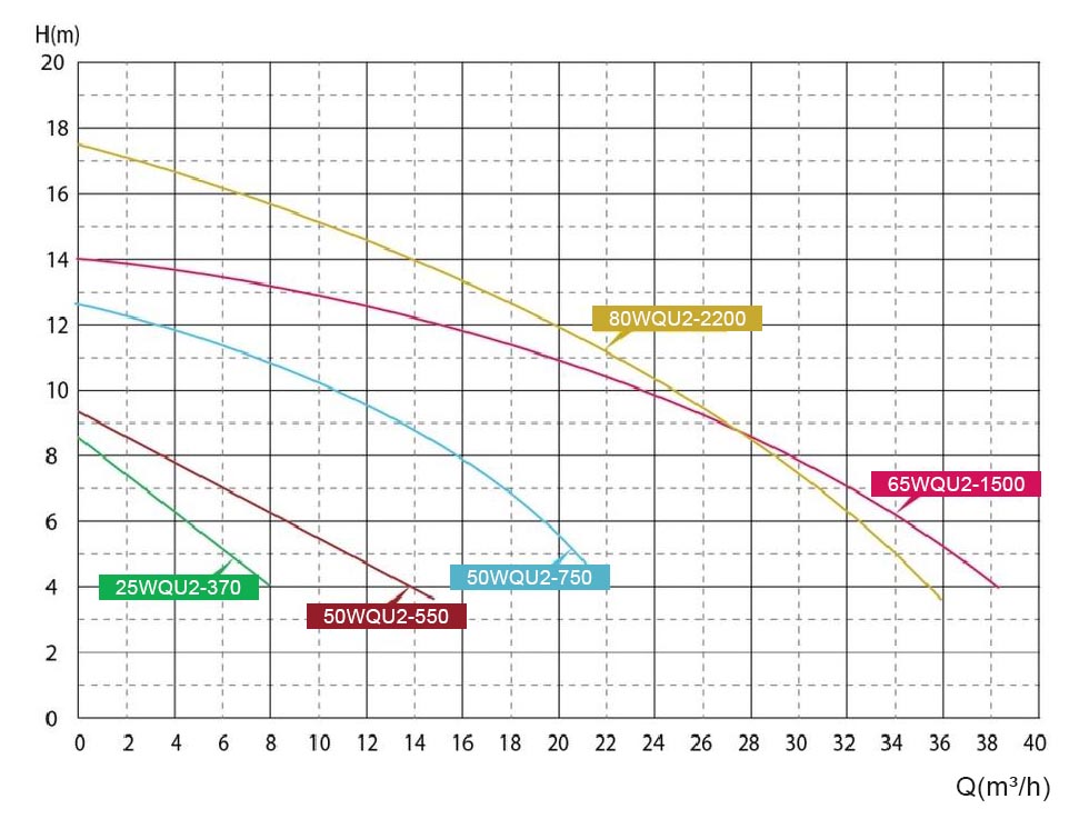 | 25WQU2-370D | 1Ph/220V | 0.37 | 0.5 | 1"/2" | 25/40 | 15 | 4 | 6 | 8.1 | 8.3 | 10.5 | 43x23×17 |