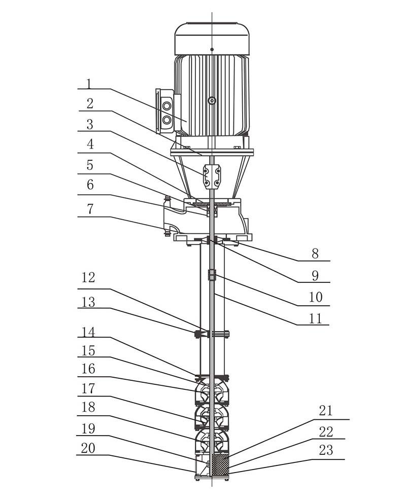 Pompa e zjarrit me turbinë vertikale me bosht të gjatë ZEN Makineri me cilësi të lartë XBD përbëhet nga disa shtytës centrifugale, kafaz udhëzues, tuba uji, boshte transmisioni, motorë bazë pompe dhe komponentë të tjerë. Baza e pompës dhe motori janë të vendosura sipër legenit, dhe fuqia e motorit transmetohet në boshtin e shtytësit përmes një bosht transmisioni koncentrik me tubin e ujit, duke gjeneruar rrjedhën dhe presionin.